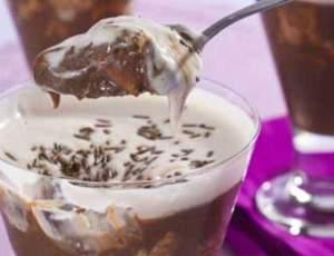 Em um refratário ou taças individuais, alterne camadas de biscoitos e creme.