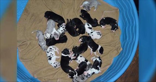 On December 5, 2015, the world got a little bit sweeter. That’s the day that Velma, a 4-year-old Great Dane from Alabama, stunned her owners Josh and Terri. You see, Velma was pregnant, and they expected her to give birth to a litter of 10. But imagine their surprise when they learned Velma was pregnant with a whopping 19 puppies! Averaging one puppy per hour, the entire birthing process took about 19 hours in total. Incredibly, all of the puppies are healthy, happy, and oh-so-adorable.