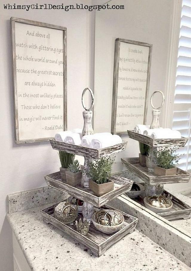 Some people want to give more improvement in their bathroom. You can also make it on yourself a small wooden rack to place some important stuffs over there. Place it in front of the mirror over the wastafel. It will give you a perfect rustic accent.