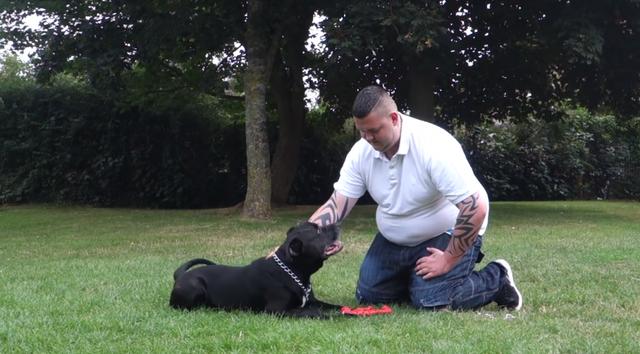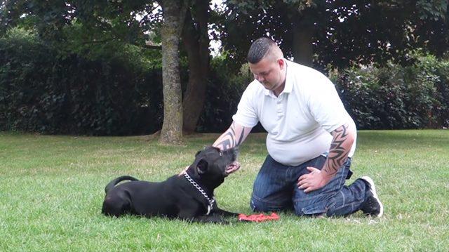 When he returned upstairs, he found his 6-year-old rare Welsh Bull Mastiff, Geo, had already grabbed the noose and held it in his mouth.
