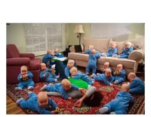 A post is being shared with this woman, in which it is claimed that a US woman has given birth to 17 children together and the photo of this lady is also visible in which her stomach is normal On the other hand, some children are seen in the second picture with a person sitting in a blue cloth.