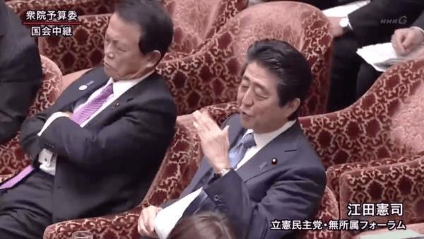 「過去のことは国民にとってどうでもいい」という問題発言があったところでカメラが安倍総理を映す。手を大