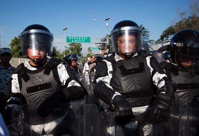 "Está ingresando de manera irregular a México, debe portar una visa mexicana o documento migratorio; no se exponga a los traficantes de personas, su vida corre peligro", explicó el agente por un altavoz.