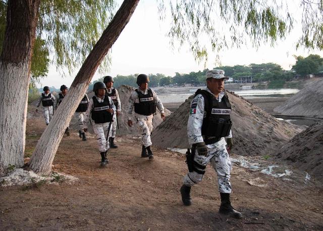 Equipos especiales de la Guardia Nacional resguardan la frontera entre México y Guatemala.