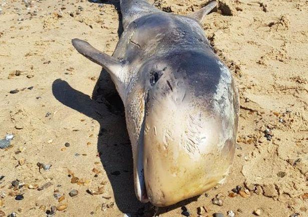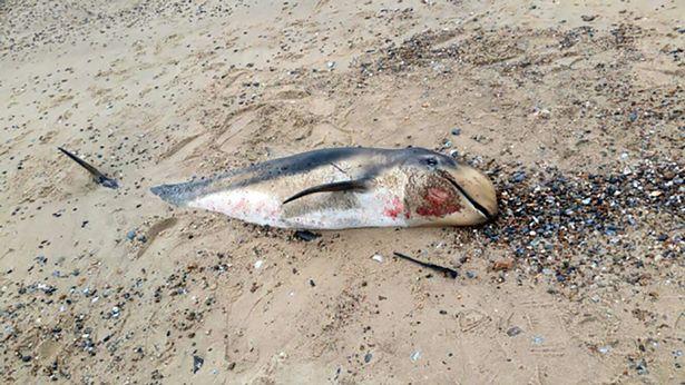 This porpoise with tell-tale bite marks was discovered at Happisburg beach in 2016 (Image: WESSEX NEWS AGENCY)