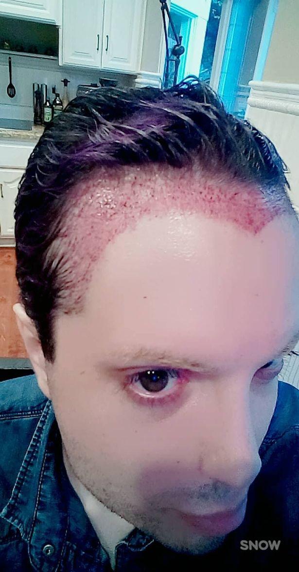 Luis pictured after surgery on his hairline (Image: Barcroft Media)