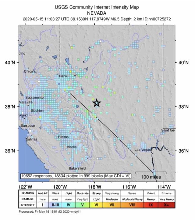 A magnitude-6.5 earthquake rattled western Nevada just before sunrise today (May 15), waking up people at 4:03 a.m. local time (11:03 UTC), well before their morning alarms went off, according to news reports.