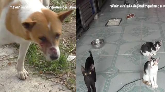 A young dog named Tang made headlines in local media today after he bravely fought off a python to protect a dozen cats at his home in rural Ang Thong province, according to his owner.