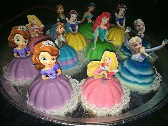 Para além da decoração do espaço e da mesa também a comida que serve pode ser personalizada de acordo com o tema, e como as crianças adoram gelatina fica aqui uma ideia diferente, original e muito gira: Bolo de Princesas em Gelatina.