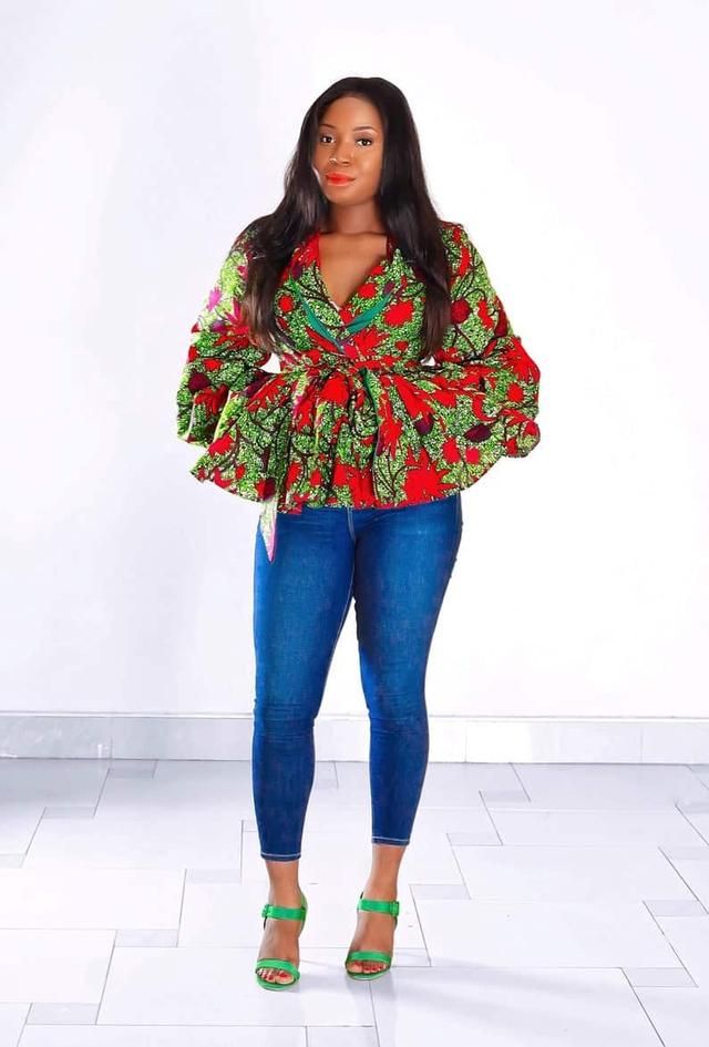 Nasb Stitches is coming through with this stunning African print blouse that doubles as a wrap jacket. This top is loose-fitted and I bet, super comfortable. The trendy style totally puts a spin on traditional Ankara jackets.