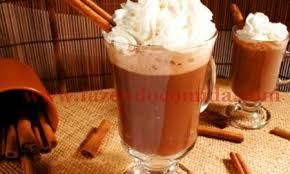 Misture bem o leite, conhaque, chocolate e açúcar a gosto. Coloque nas xícaras, cubra com o chantilly e polvilhe a canela