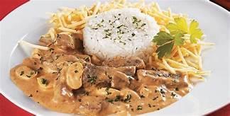 Desligue o fogo, acrescente o champignon cortados em filetes, também o creme de leite, misture bem