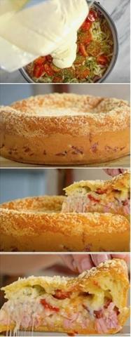 Colocar o presunto picado, o bacon, o queijo muçarela ralado, os tomates e o orégano.