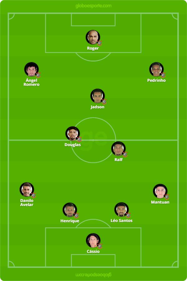 Escalação provável do Corinthians: Cássio, Mantuan, Pedro Henrique, Henrique e Danilo Avelar; Ralf e Douglas; Pedrinho, Jadson e Romero; Roger