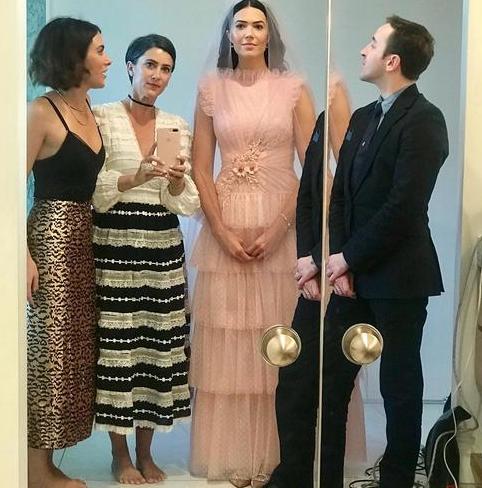 Her friend and makeup artist posted a now-deleted series of photos this morning, writing in the caption: "Yesterday was pretty magical. I laughed, I cried and I danced real hard. And Mandy's dress is, wait for it, PINK.