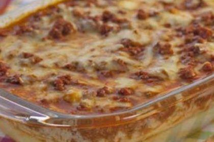 - Num refratário, arrume em camadas metade da carne, metade das rodelas de batata, o restante da carne,