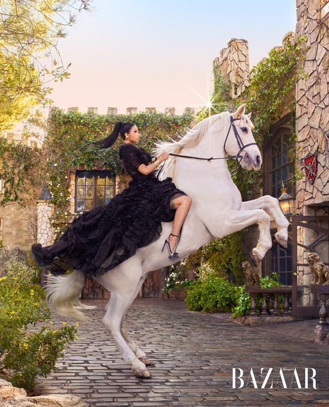 In case you haven’t realized, Cardi B. is here to stay. The Bronx born star who has shot to fame from once recording funny videos on Instagram, opens up to Harper’s Bazaar on fame, family, and Offset. The shoot is a “fairy tale” editorial, with Cardi B. channeling everything from Rapunzel, to Cinderella forgetting her shoe at the stroke of midnight, to saving her own damn self on a horse, and even breathing fire.