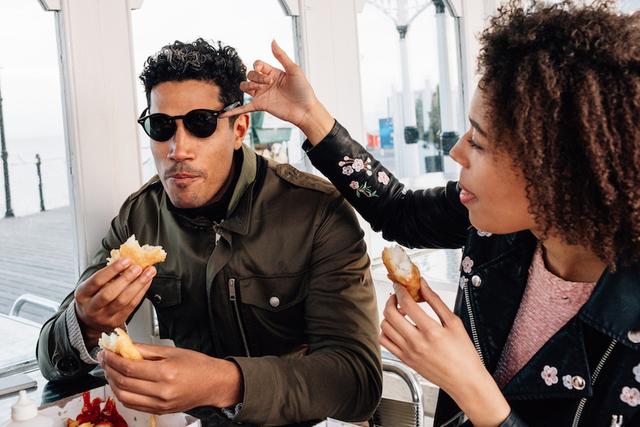 Gettyimages.cmo/Mixed race couples on a day out at seaside having fun flirting on a date