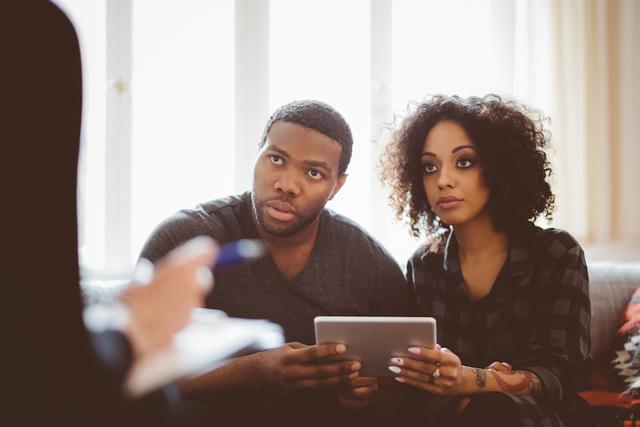 Gettyimages.com/Young african couple holding digital tablet in a meeting with financial advisor at home