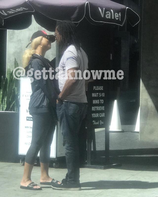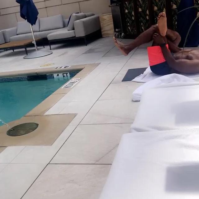 If you thought this was just some random man she was stalking at the pool, think again. The two were also seen standing extremely close to one another. And from what we can see of her face, she looks pleased.