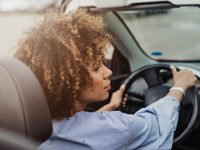Gettyimages.com/Beautiful woman driving a cabriolet car with safety seat belt on
