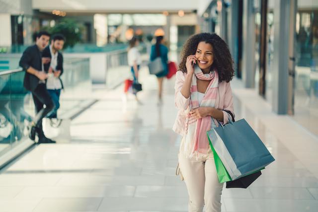Gettyimages.com/Guys looking at beautiful woman in the shopping mall