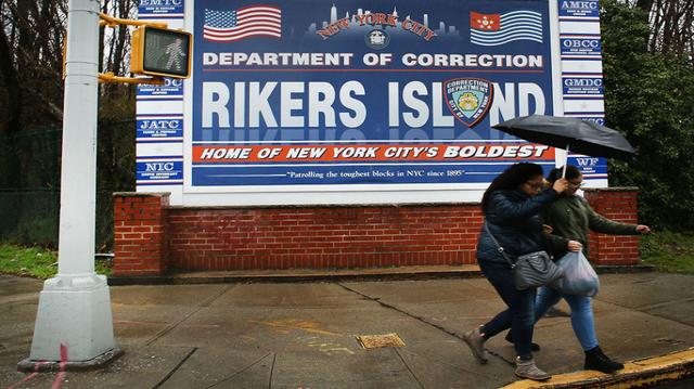 NEW YORK, NY – MARCH 31: People walk by a sign at the entrance to Rikers Island on March 31, 2017 in New York City. New York Mayor Bill de Blasio has said that he agrees with the fundamentals of a plan to close the jail complex on Rikers Island within 10 years. A newly released report from an independent commission, led by Judge Jonathan Lippman and created by the City Council last year, has recommended the closer of the troubled facility. (Photo by Spencer Platt/Getty Images)