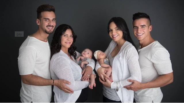 Quer uma família mais moderna do que essa? Duas mulheres que são casadas tinham um grande sonho de ter filhos, mas por conta de serem apenas mulheres, precisariam realizar uma inseminação para que uma delas (ou as duas) pudessem engravidar. Elas possuem um casal de homens que também são casados, foram eles os doadores de esperma.