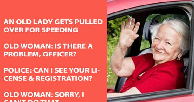 But, this old lady has found her own way of handling with the polce when stopped for speeding,