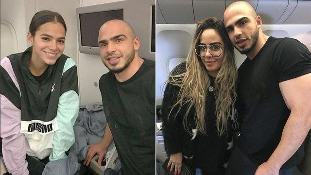 Ao lado da irmã de Neymar, Rafaella Santos, Bruna viajou em um jatinho particular para assistir ao jogo do Brasil na Copa.