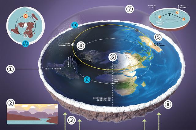 Para os terraplanistas, o Sol e a Lua são bolas do tamanho de cidades, o planeta é cercado por uma muralha de gelo e a gravidade… Bom, a gravidade não existe.