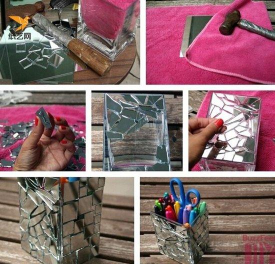 - Para fazer porta-canetas com espelho quebrado ou porta-lápis com espelho quebrado você irá precisar de:Espelho quebrado ou espelho, toalha e martelo;
