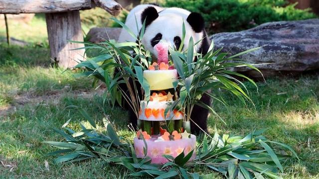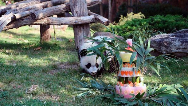 The party, held in honor of Yuan Meng at the Beauval Zoo, was complete with a vibrant looking cake made out of bamboo, honey and a variety of different fruits.