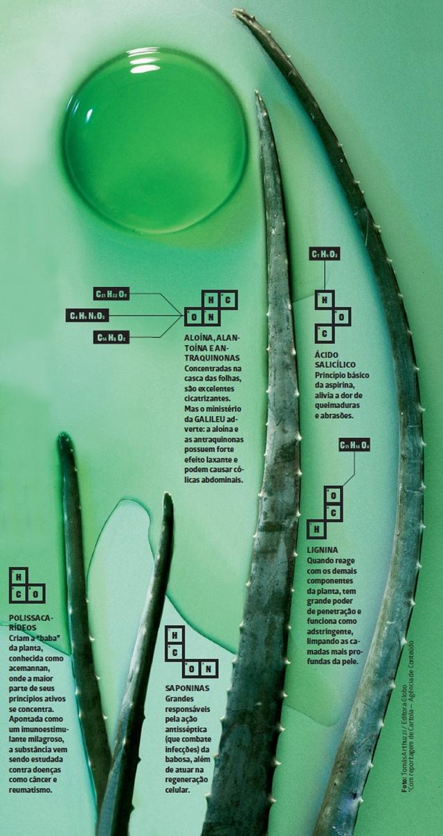 Há indícios de que ela era recomendada por Aristóteles como curativo aos soldados de Alexandre, o Grande. Marco Polo também a descreveu como o remédio preferido da corte chinesa contra dor de barriga. A Aloe vera, também conhecida no Brasil como babosa, é uma suculenta planta empregada há mais de 5 mil anos para fins medicinais. Tida como a “planta da imortalidade” no Antigo Egito, ela é famosa pelas propriedades analgésicas, regenerativas e antioxidantes, além de ser altamente nutritiva: a polpa das folhas, mesmo com 95% de água, é rica em vitaminas e minerais e contém 20 dos 22 aminoácidos existentes.