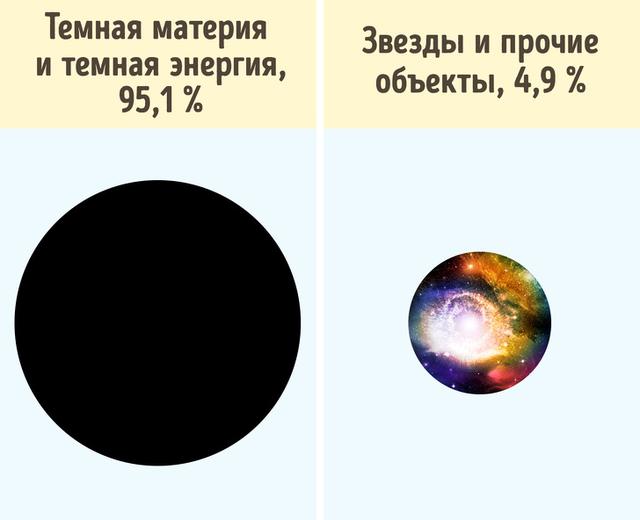 According to scientists, about 95.1% of our universe consists of dark matter and dark energy: the first accounts for 26.8%, the second - 68.3%. The hypothesis of the presence of dark matter was derived back in 1922, when the British scientist D. Jeans and his Dutch counterpart J. Kaptein first used the term in their work, suggesting that most of the substance filling the universe is invisible.