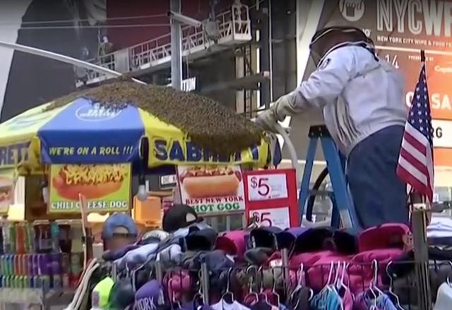 After news of the bees spread throughout the city's media hive mind, the New York Police Department roped off part of the street, then began to suck the bees up with a special bee vacuum. (In fact, the NYPD has long retained a bee cop.)