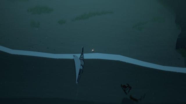 Below begins with a long introduction. Not a tutorial or a cinematic that gives any sort of context to the game, but a wide angle shot on the ocean as clouds rain down on undulating waves. Slowly, a little ripple is revealed in the middle of the water, and over the course of several unflinching minutes as a melancholic song plucks along, the camera zooms in on a boat, which then lands on a rainy beach.