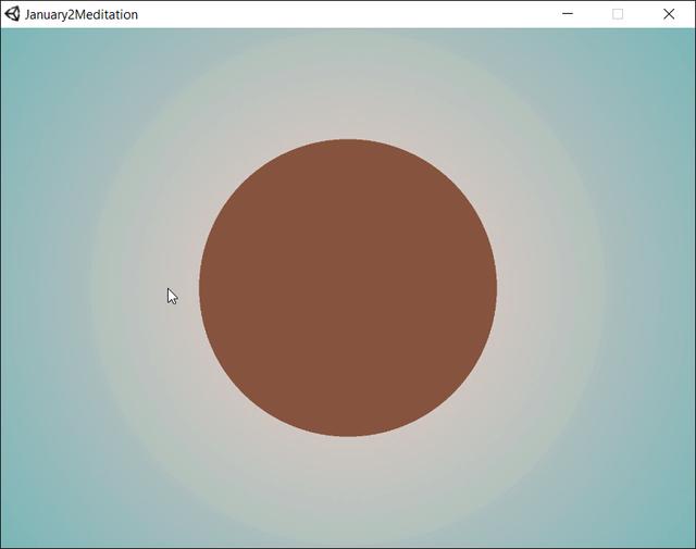 The goal of the Meditation is to make that central circle large enough to fill the whole playing area. To do that, you've got to get into the groove of holding down your button just long enough for the circle to inflate without it going full red. Then you release for a few seconds while the color reverts, and repeat the whole process again.