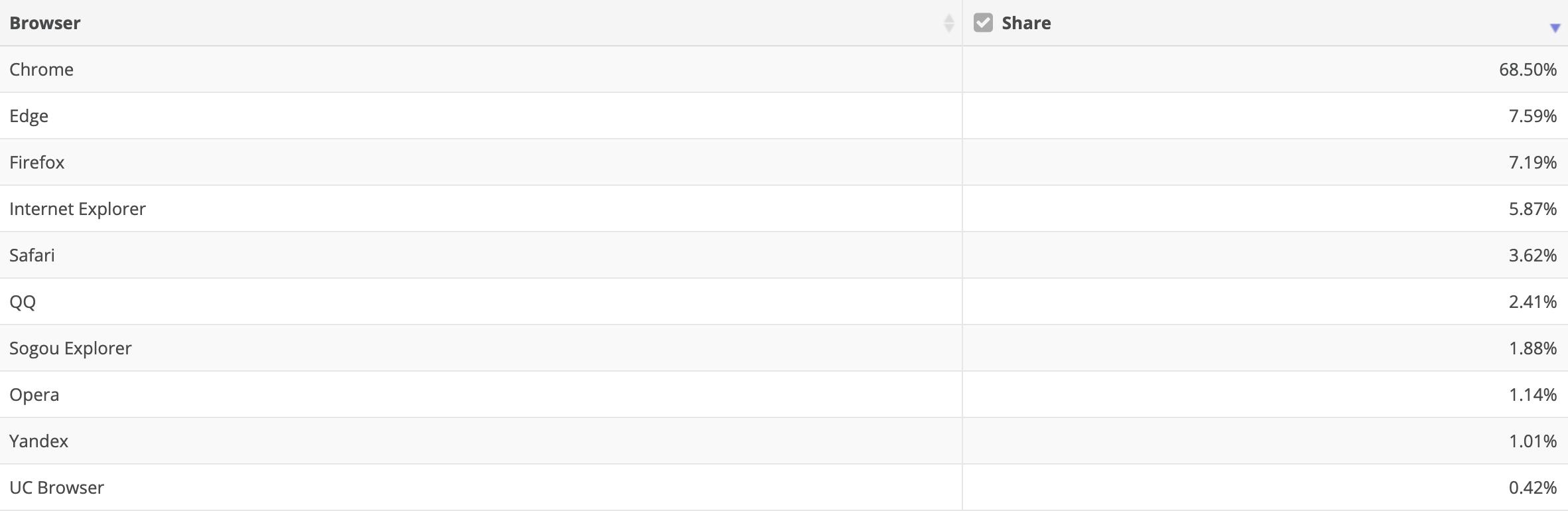 According to NetMarketShare, as of March 2020, Microsoft Edge holds a share of 7.59% in the desktop browser market, beating the Firefox that sits closely behind with a share of 7.19%. Google Chrome, on the other hand, has a runaway win with a share of a whopping 68.5% in the market.
