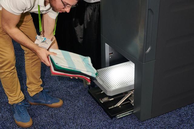 During a brief demo, I was able to fold three shirts just by feeding them into the FoldiMate's robotic arms. Sure enough, each time, the robot dutifully clamped onto the items and spit out a neatly folded garment a few seconds later.