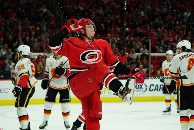 Calgary had all the momentum early on in this game and got the first goal of this contest off the stick of former Hurricane Elias Lindholm. Johnny Gaudreau would feed Lindholm with a beautiful pass that Lindholm would wire home past Petr Mrazek and the Flames would take an early 1-0 lead. A little over a minute later it looked like the Flames were off and running when Mikael Backlund would score his third goal of the season to give the Flames a 2-0 lead. Carolina would smartly challenge the goal, saying the Flames were offside and sure enough, they were. All the momentum the Flames had going for them seemed to disappear at that point and the Hurricanes would slowly start to take over.