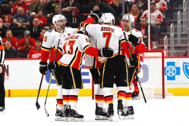 The Calgary Flames began their east coast road trip by walking into Little Caesars Arena and feasting on some pizza and some Red Wings.