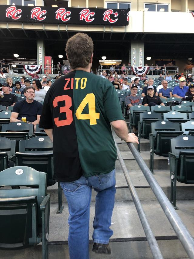 Doug and kdl were at the River Cats playoff game on Wednesday and Doug thought it would be a good idea to wear something...somewhat controversial.
