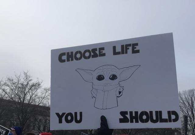 “Baby Yoda,” from Star Wars spin-off show The Mandalorian, was spotted on several signs at the anti-abortion March for Life in Washington, D.C., Friday.