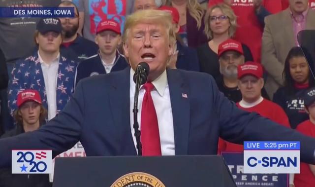President brought up his ongoing impeachment trial Thursday night at a political rally in Des Moines, Iowa.