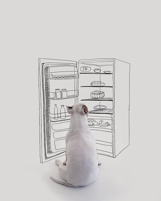 Inspirado pelas paredes em branco e seu cão, Mantesso começou a tirar fotos de Jimmy correndo pela casa e esse foi o momento em que essa série de fotos engraçadas nasceu.