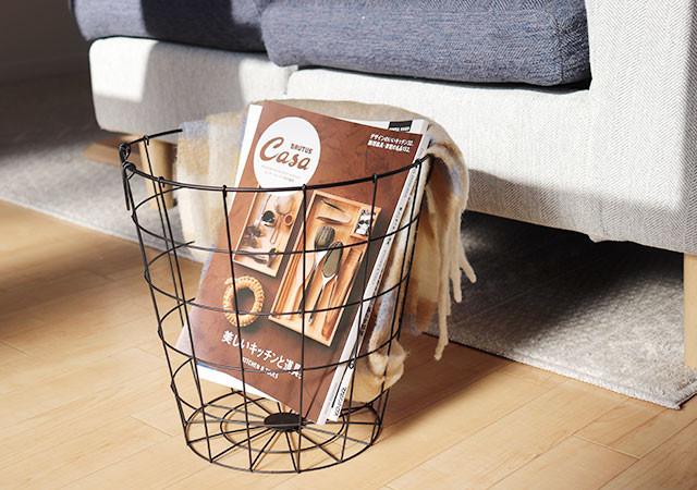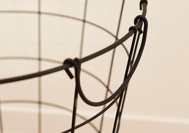 黒い細ワイヤーがモダンな雰囲気。底面のデザインが放射線状になっていてとってもお洒落。何も入れないでお部屋に置いておくだけでも絵になります。