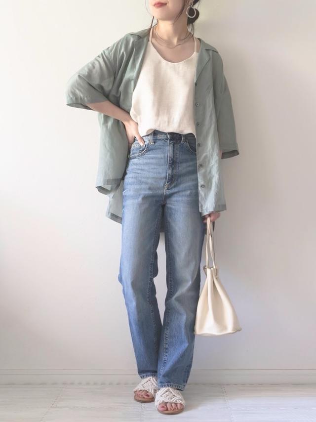 キャミソールにシアーシャツを羽織った、晩夏コーデにもぴったり♡