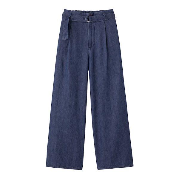 売り切れ間近!3桁プライスが嬉しい♡ GU「ウエストベルトデニムワイドパンツ」
