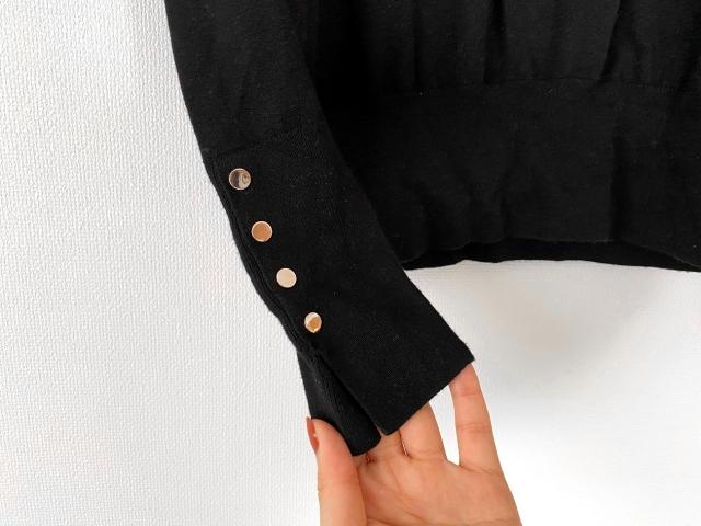 シンプルなクルーネックに両袖のゴールドボタンがアクセントになったデザイン。